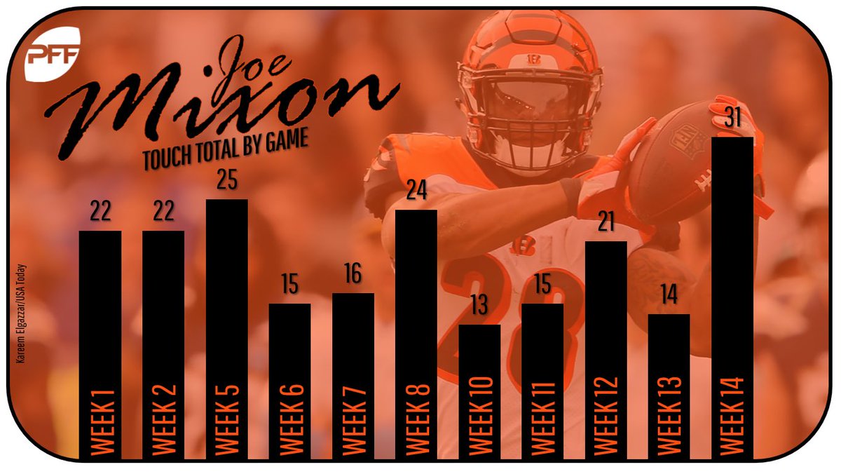 Pff Fantasy Football On Twitter Joe Mixon Set A Season High In Touched Last Week